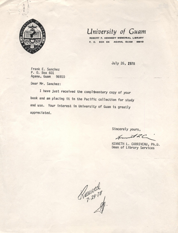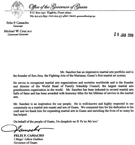 2008 Letter from Governor Felix Camacho, the Honorable Governor of Guam