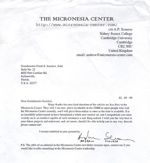 1999 Letter from the Micronesia Center - Cambridge University - England