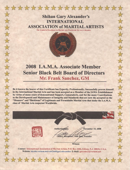 2008 I.A.M.A. Associate Member Sr. Black Belt Board of Directors appointment