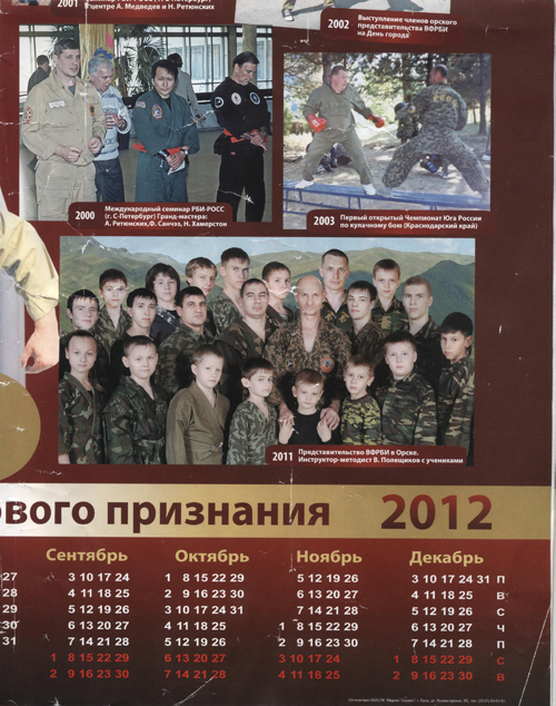2012 Russian Martial Arts Calendar Poster (GM Sanchez top left corner)