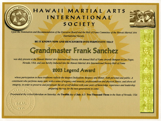 Hawaii Martial Arts International Society 2003 Martial Arts Legend Award