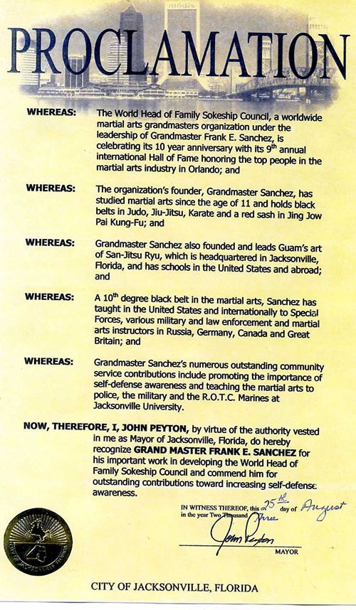 Proclamation from the Honorable John Peyton, Mayor of Jacksonville, FL